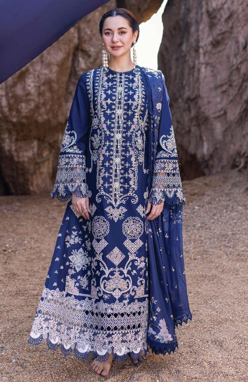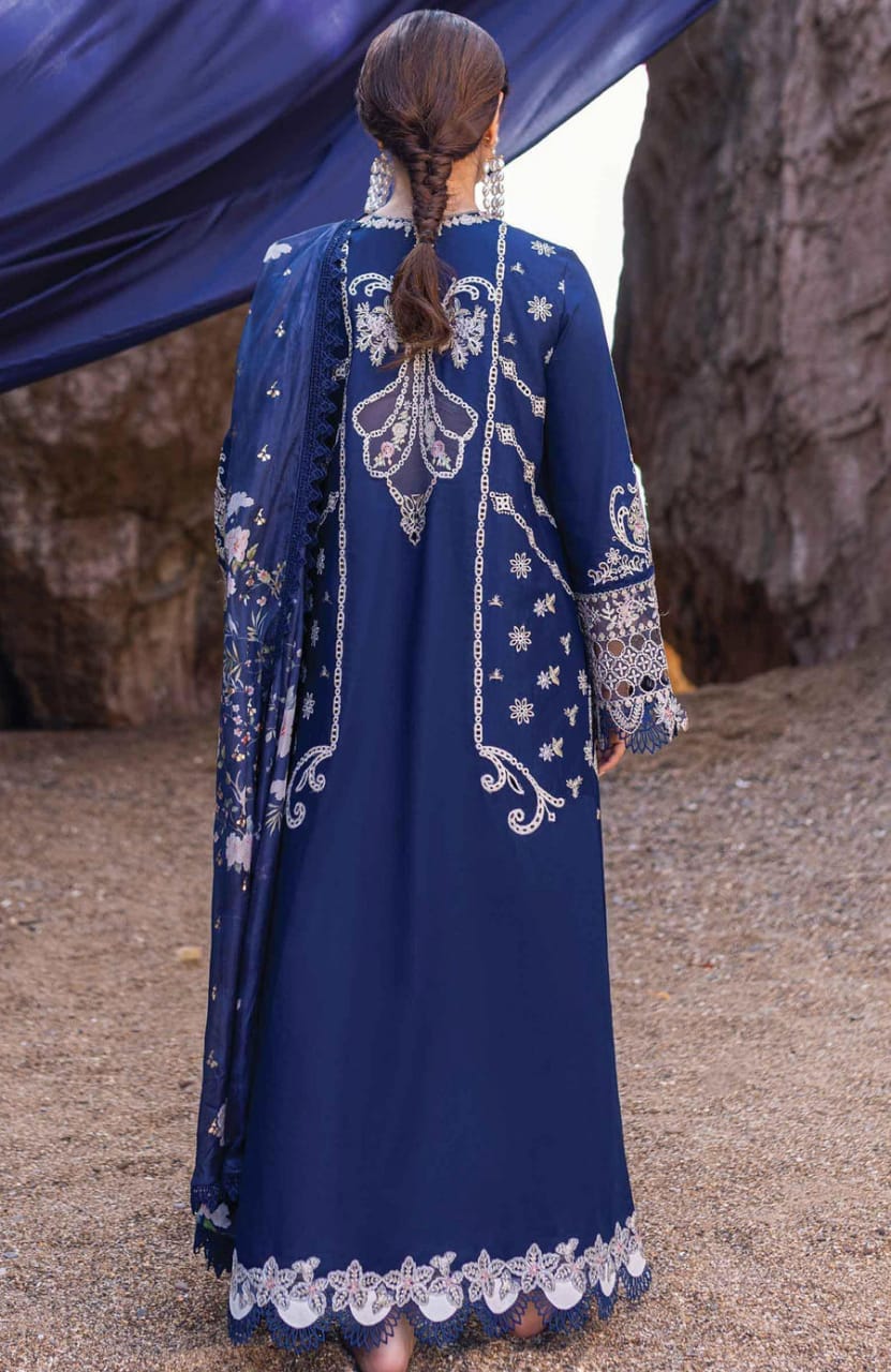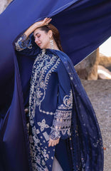 Qalamkar Blue Luxury Lawn Embroidery Dress 3pc