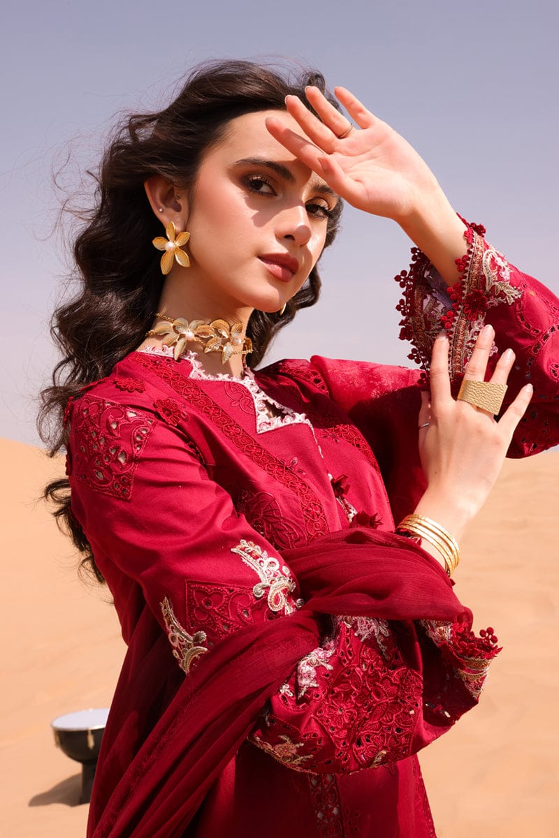 Qalamkar Red New Arrival Chikankari Embroidery Collection 3pc
