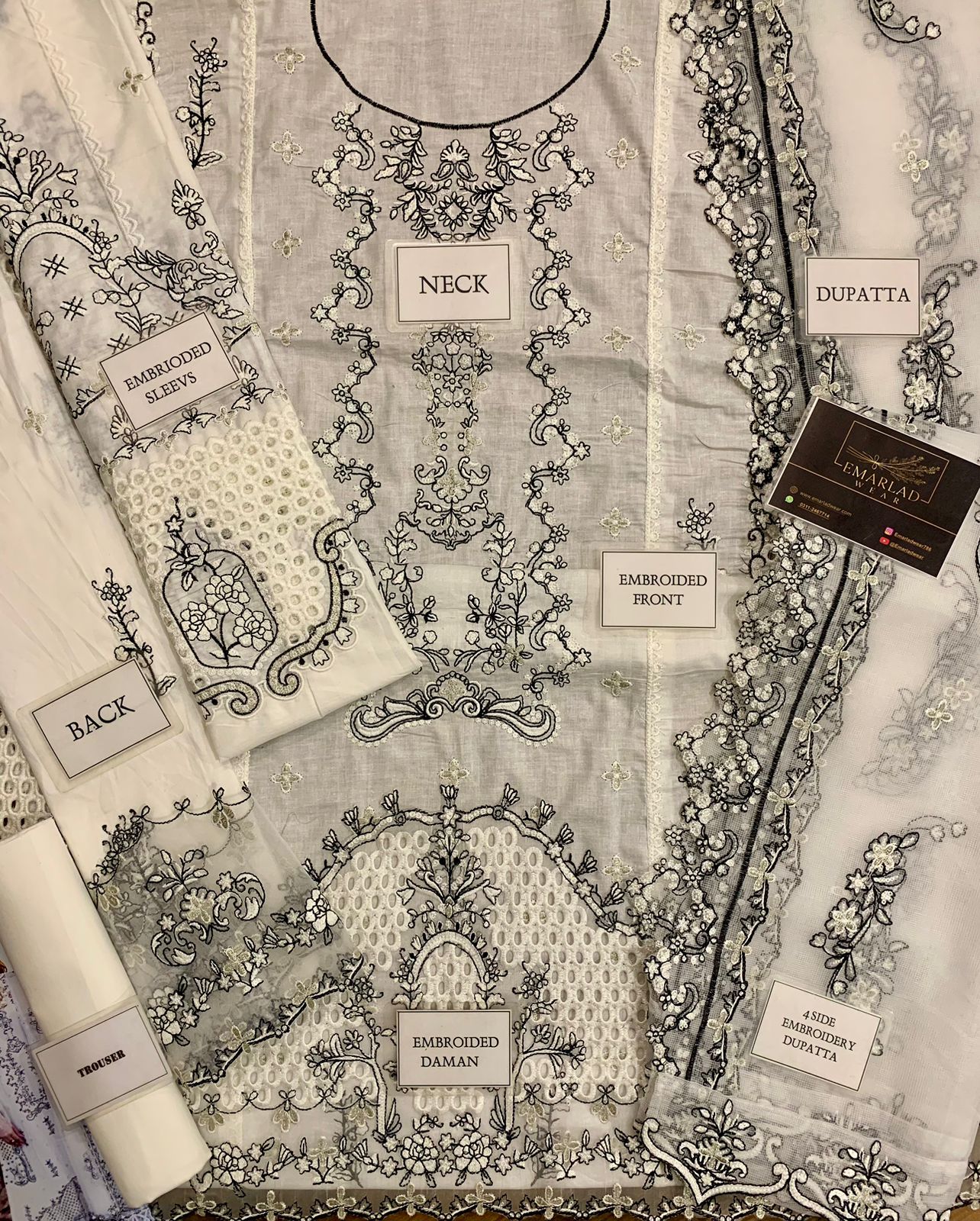 QALAMKAR WHITE LUXURY LAWN EMBROIDERY DRESS