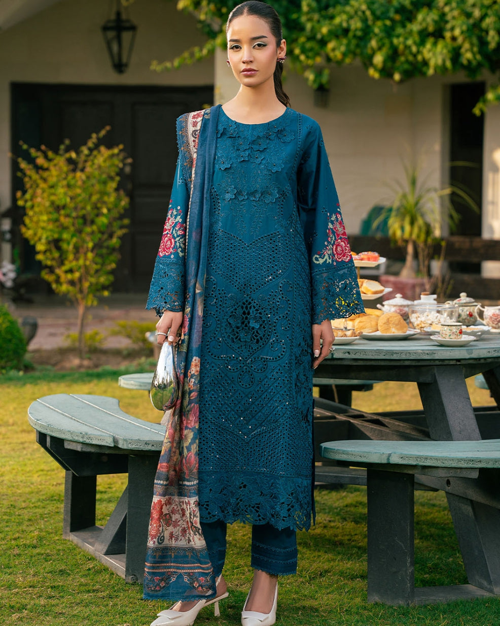 •Big Sleeves Heavy Sequence Embroidered cross stitched work Chikankari with Sequence Cutwork Embroidered Broders