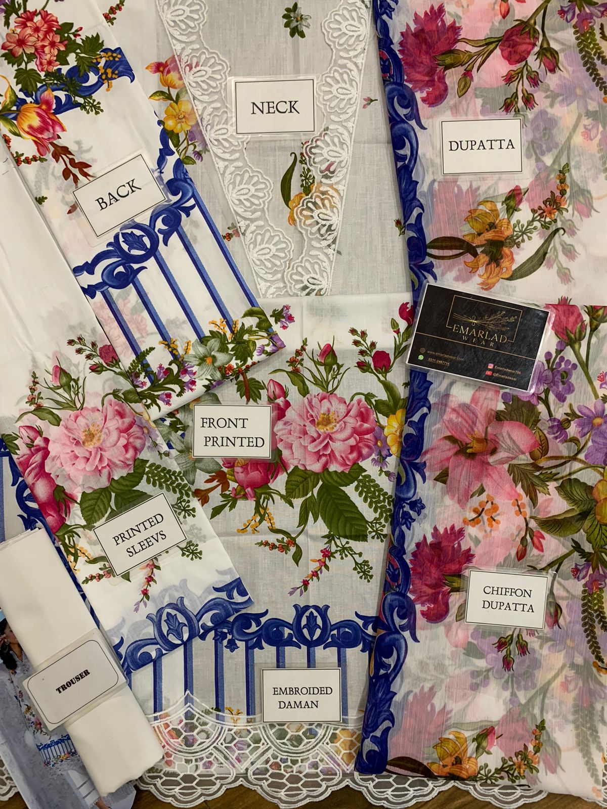 SS Muzlin White Pure Lawn Digital Embroidery Dress 3pc