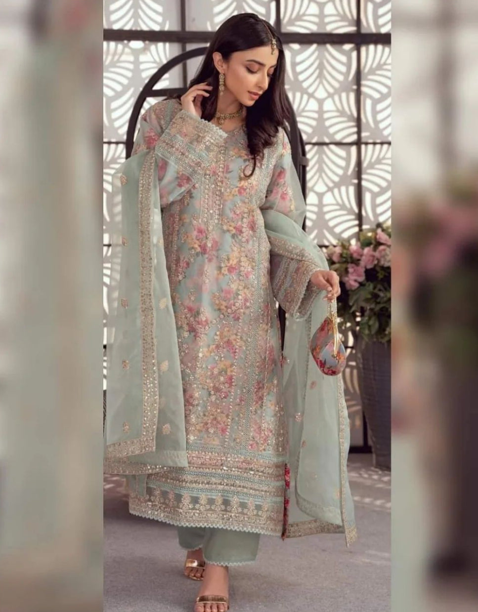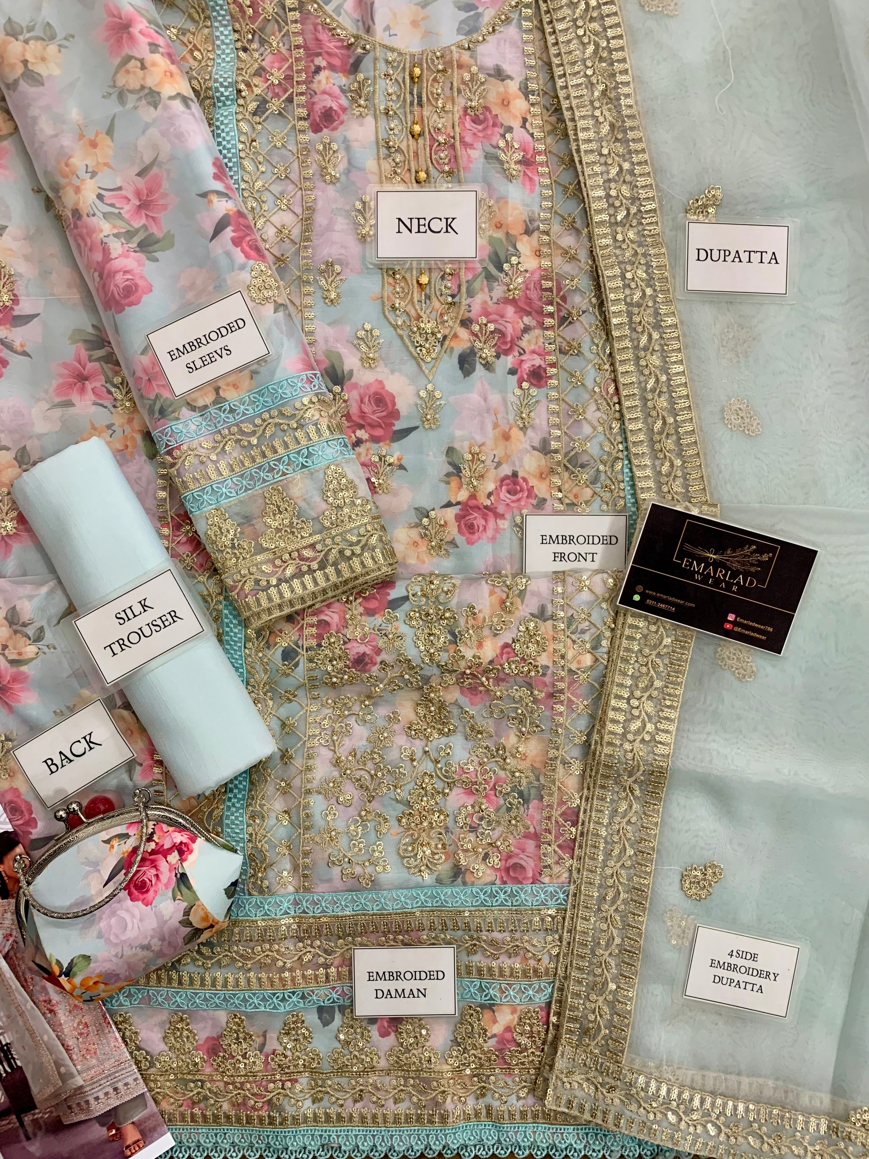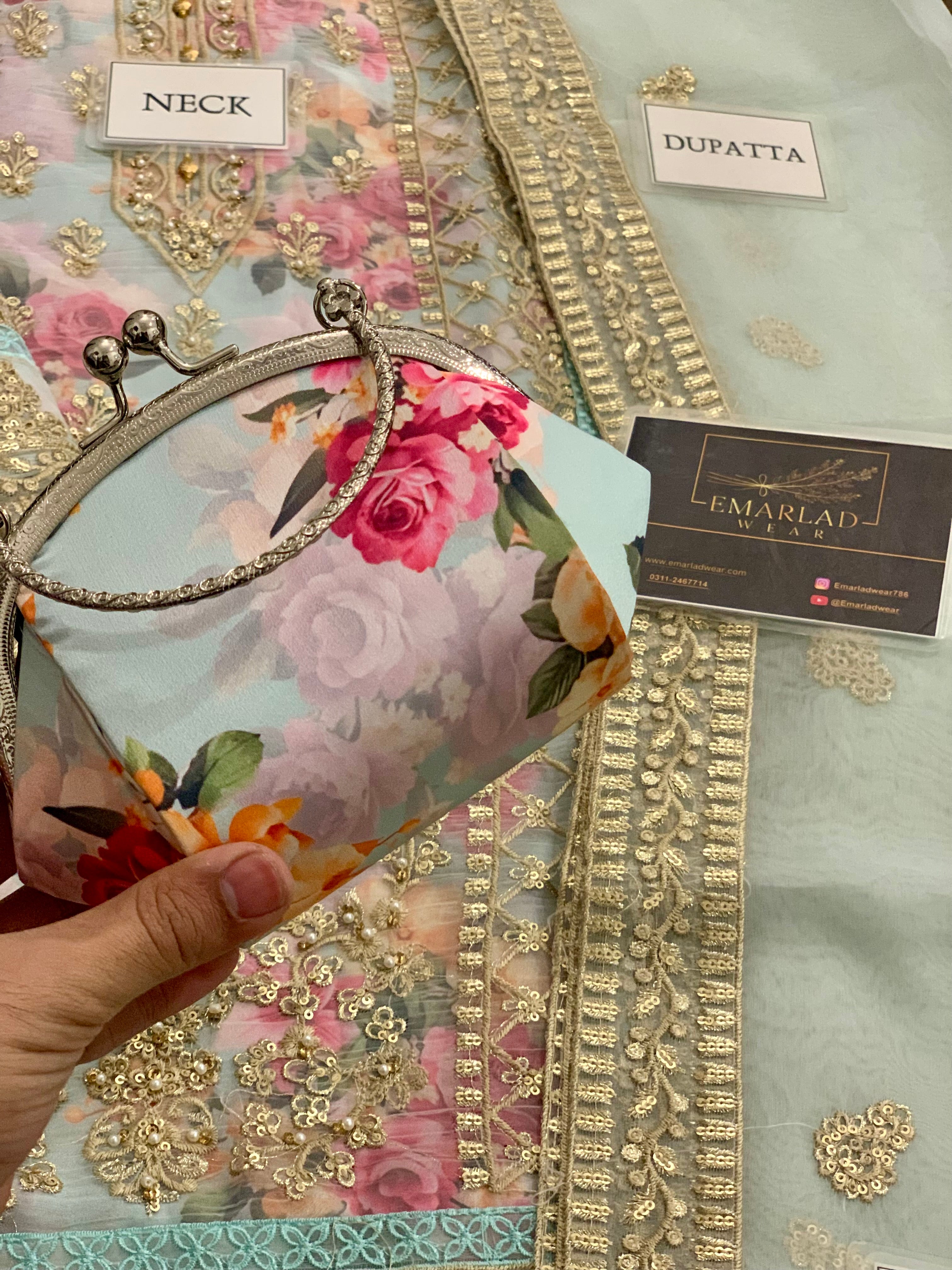 Tawakal | Aqua green with purse 👜 - Digital Printed Silk Inner
