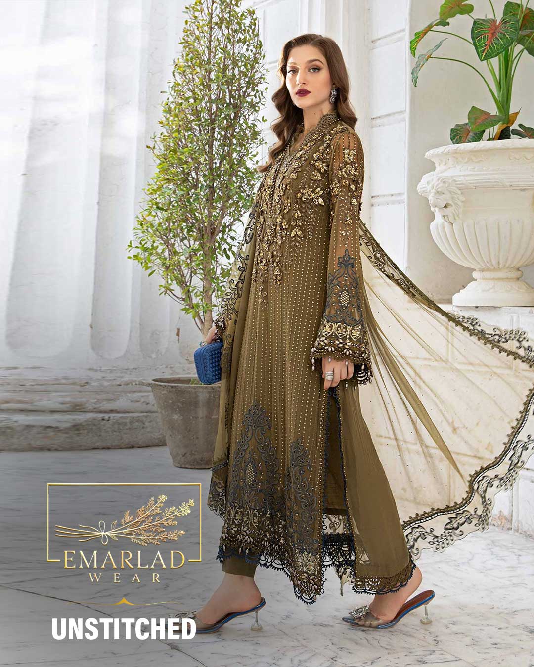 Maria b mehndi green Unstitched Embroidered Chiffon Suit