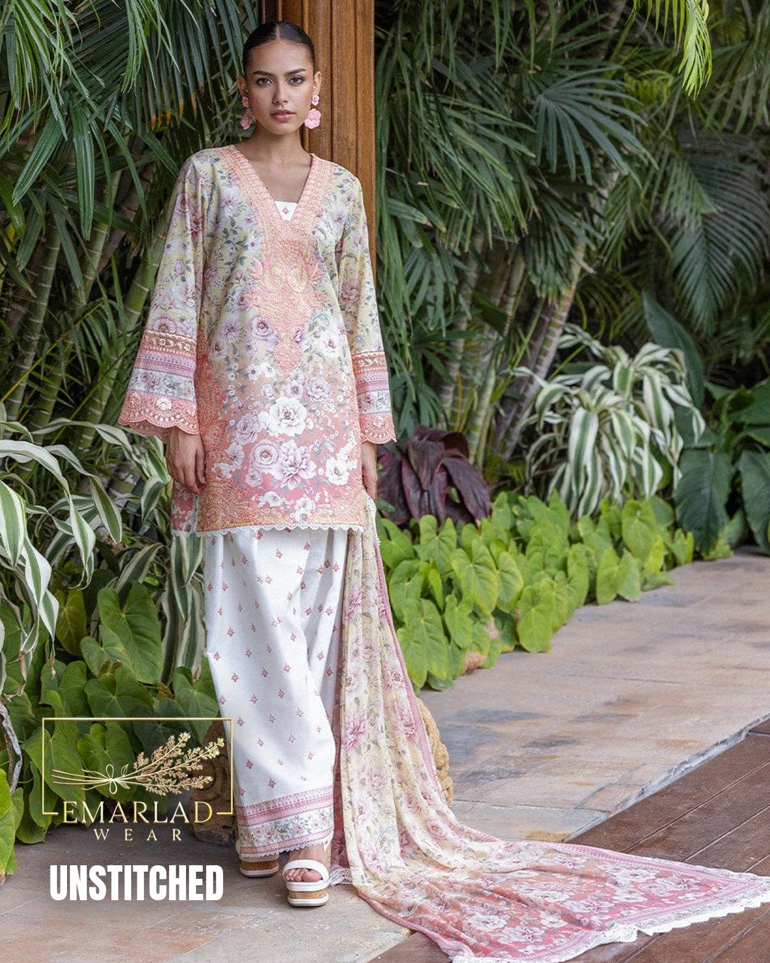 The outfit features premium quality printed lawn fabric paired with a beautifully embroidered chiffon dupatta that adds a luxurious and festive touch. The soft and breathable lawn makes it perfect for summer wear in Pakistan, while the printed trouser completes the look with style and comfort.