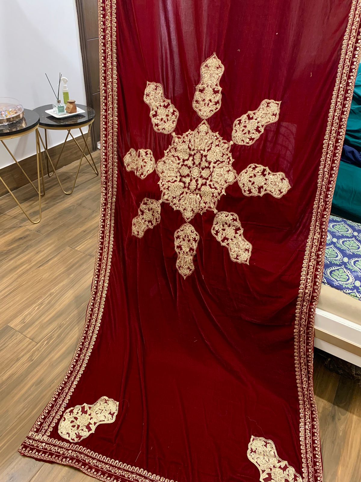 -velvet fully heavy embroidered spangle work centre bunch on peace with 4 side fully heavy embroidered spangle border on peace with 4 side heavy embroidered spangle work bunches attach